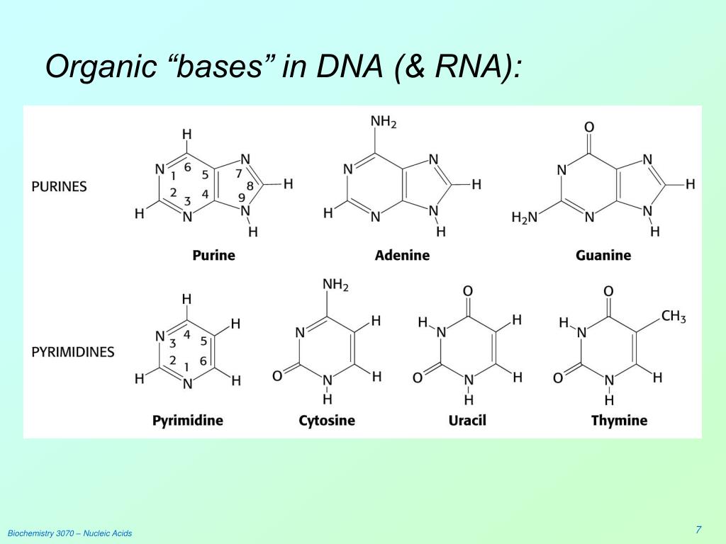 Organic “bases” in DNA (& RNA): Biochemistry 3070 – Nucleic Acids
