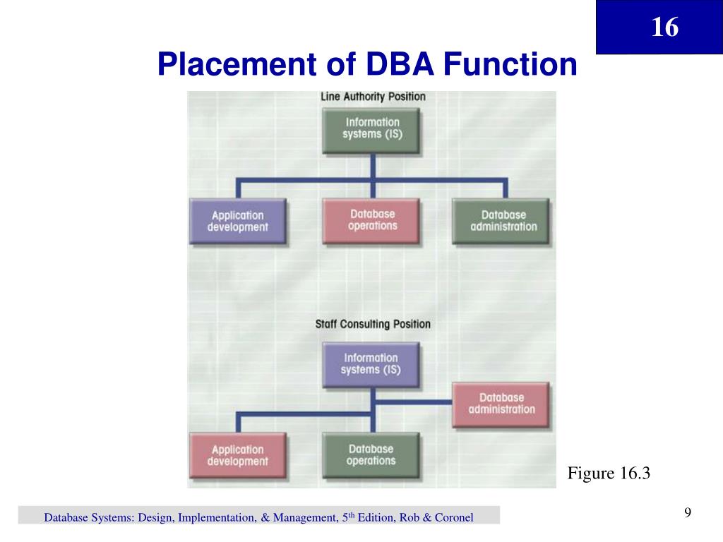 Placement of DBA Function Figure 16.3 Database Systems: Design, Implementation, & Management, 5th Edition, Rob & Coronel