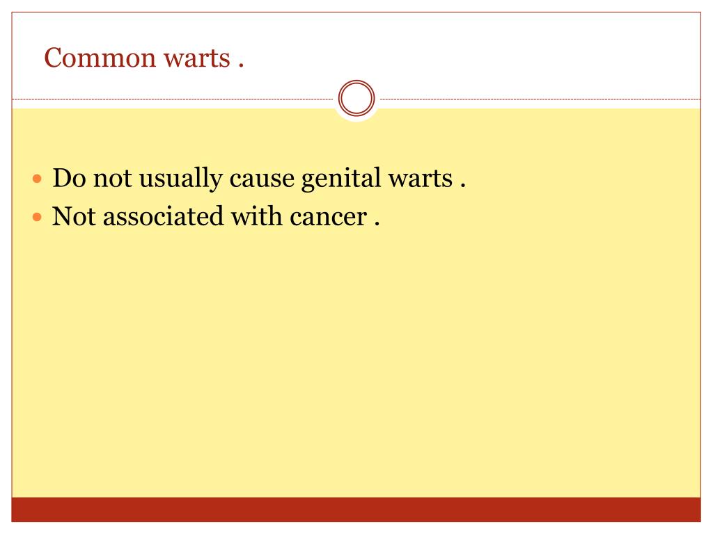Common warts . Do not usually cause genital warts . Not associated with cancer .