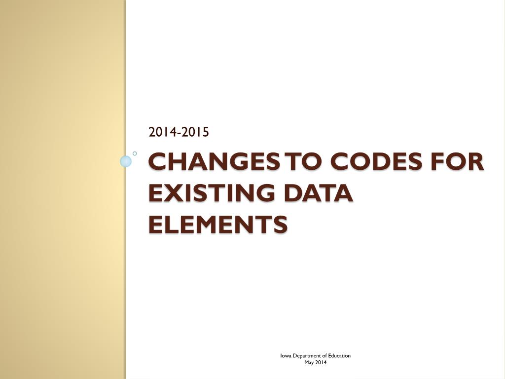 2014-2015 Changes to Codes for existing Data Elements Iowa Department of Education May 2014