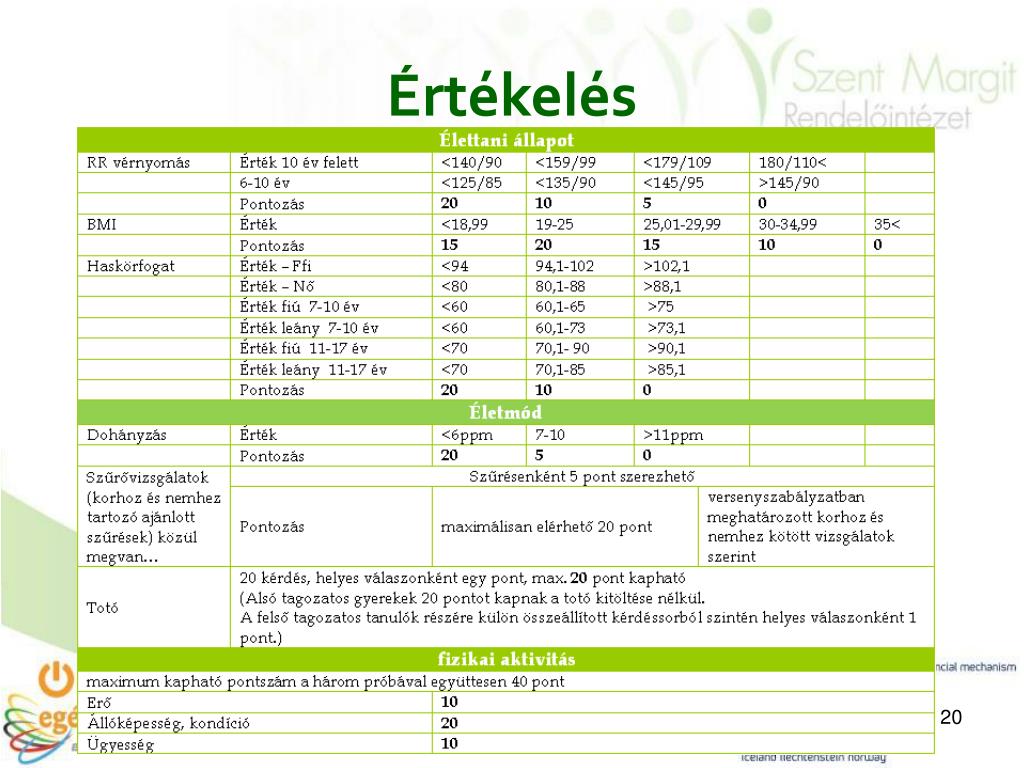 Népegészségügyi adatok (2) • A dohányzás és az alkoholizmus után az elhízás a harmadik legfontosabb elkerülhető, betegséghez és halálozáshoz vezető ok, • nők 29%-a, a férfiak 38%-a túlsúlyos, • Az elmúlt tíz évben megduplázódtak a fiatalok gerincbetegségei. Felmérések szerint a gyermekek és fiatalok 60–80%-a tartáshibás. • Az ifjúság 55%-a nem sportol semmit,