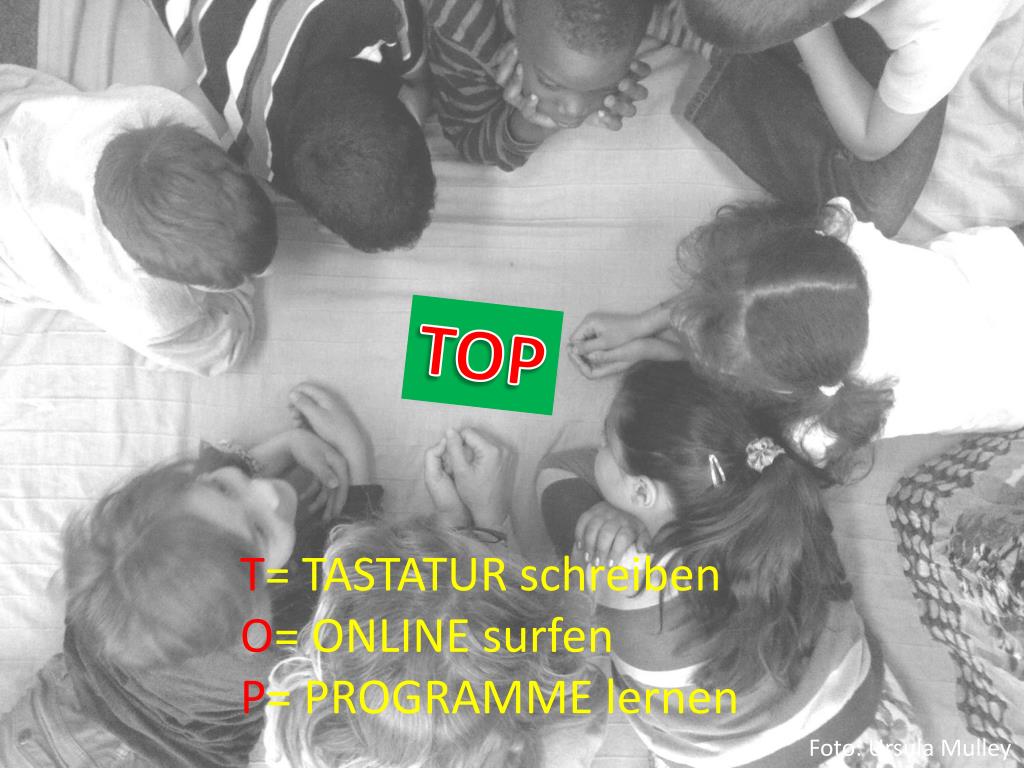 TOP T= TASTATUR schreiben O= ONLINE surfen P= PROGRAMME lernen Foto: Ursula Mulley