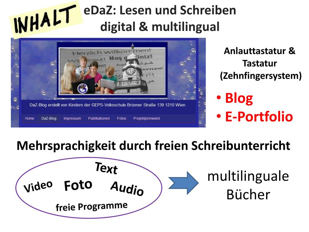 eDaZ: Lesen und Schreiben digital & multilingual Anlauttastatur & Tastatur (Zehnfingersystem) • Blog • E-Portfolio Mehrsprachigkeit durch freien Schreibunterricht Text multilinguale Bücher Foto Video Audio freie Programme