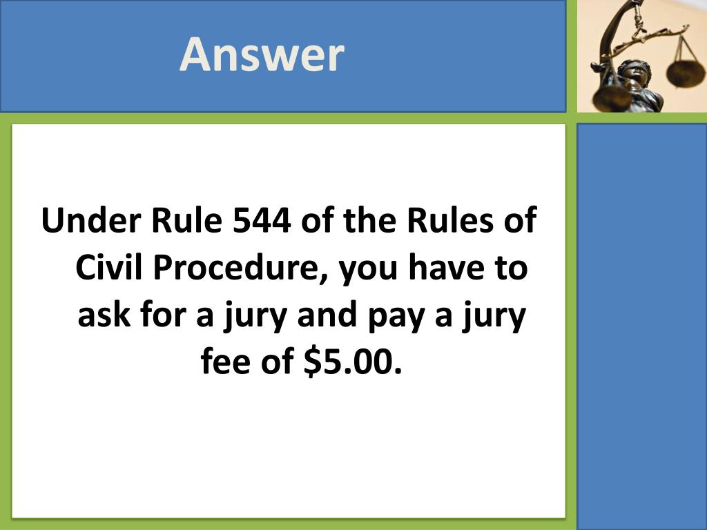 Answer Under Rule 544 of the Rules of Civil Procedure, you have to ask for a jury and pay a jury fee of $5.00.