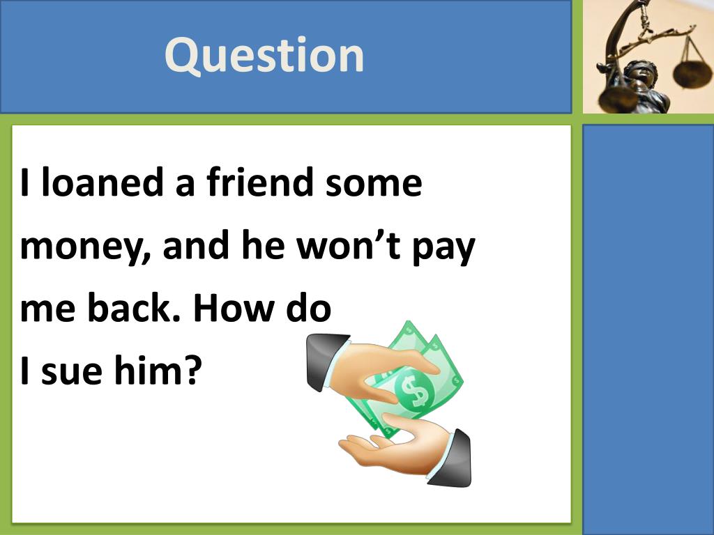 Question I loaned a friend some money, and he won’t pay me back. How do I sue him?