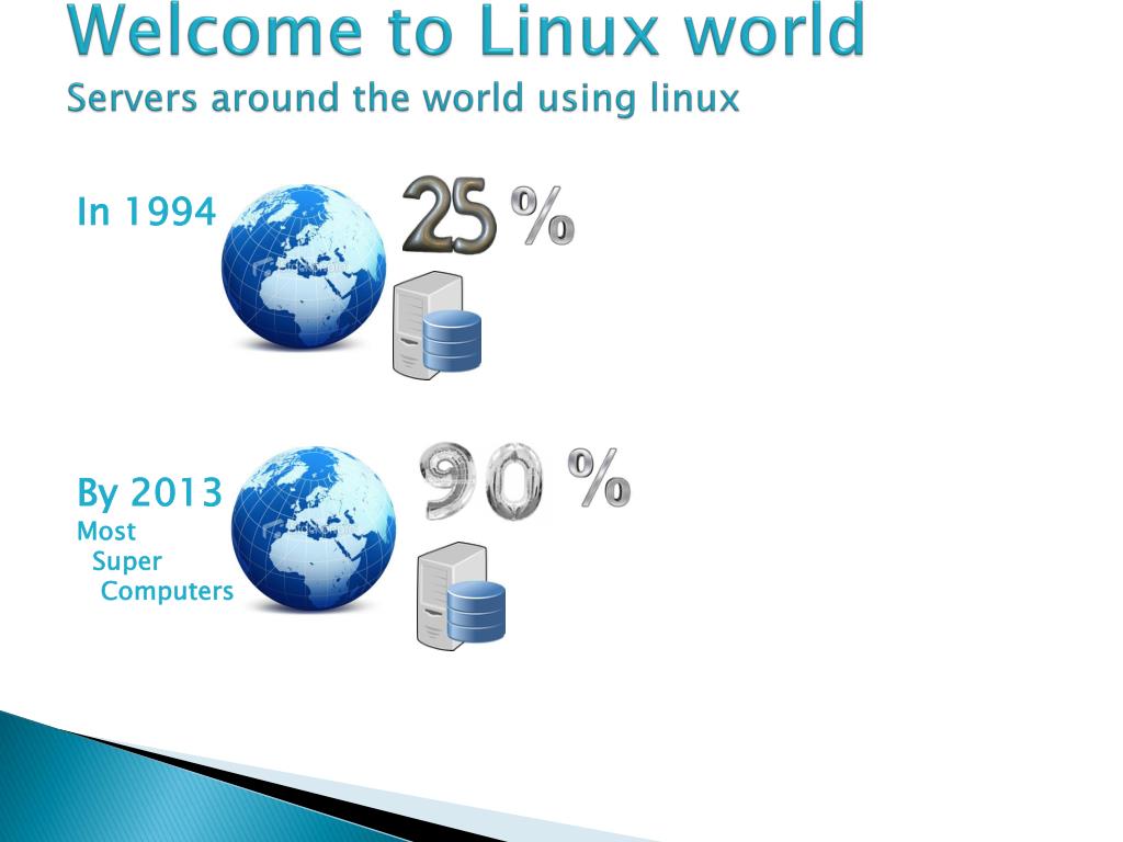 Welcome to Linux worldServers around the world using linux In 1994 By 2013 Most Super Computers