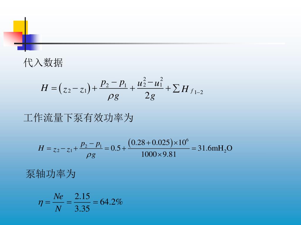 代入数据 工作流量下泵有效功率为 泵轴功率为