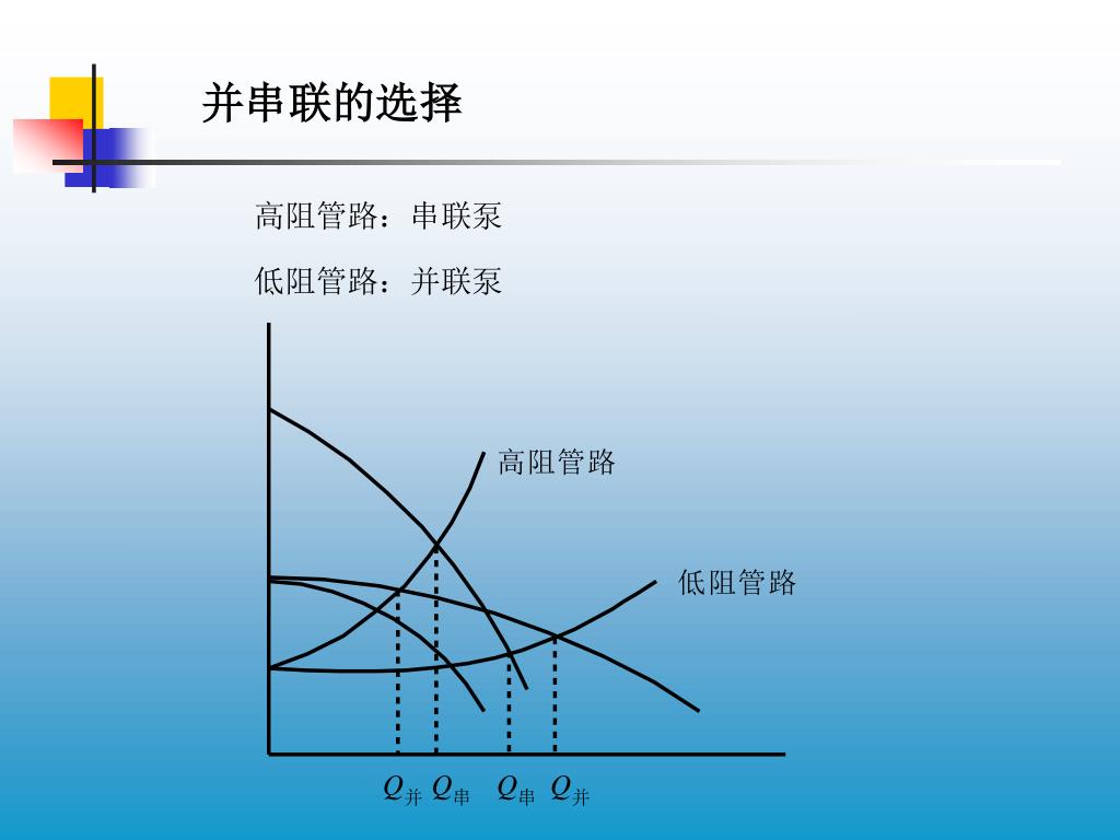 并串联的选择 高阻管路:串联泵 低阻管路:并联泵