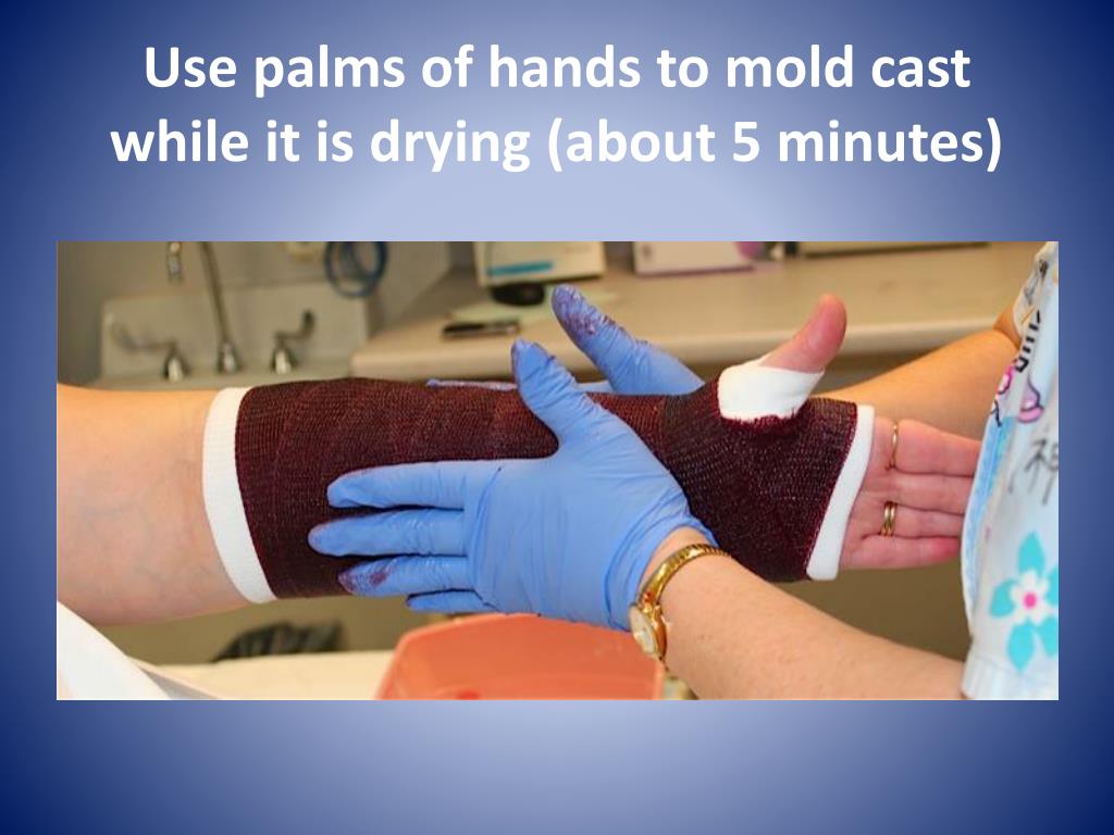 Use palms of hands to mold cast while it is drying (about 5 minutes)