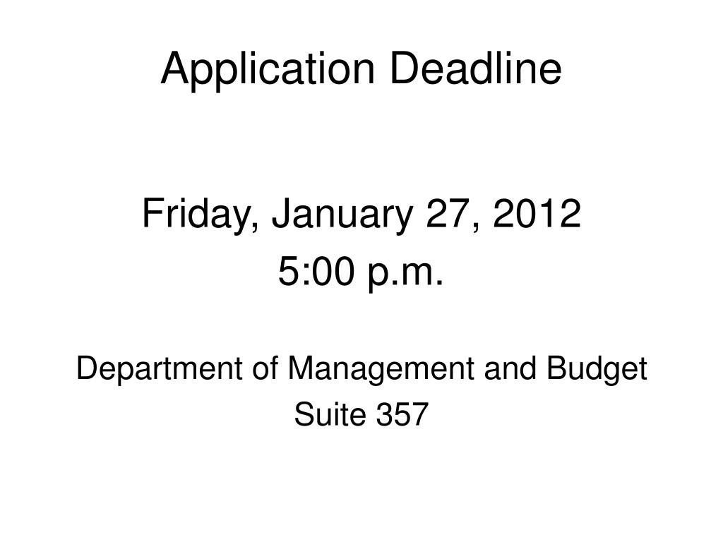 Application Deadline Friday, January 27, 2012 5:00 p.m. Department of Management and Budget Suite 357