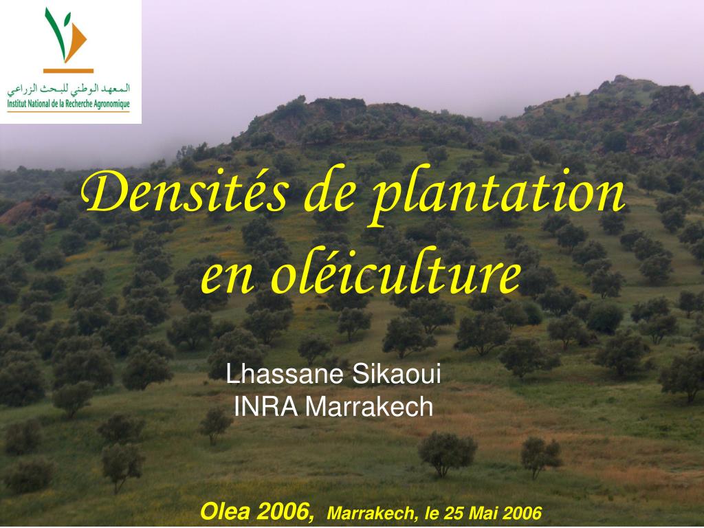Densités de plantation en oléiculture. Lhassane Sikaoui INRA Marrakech. Olea 2006, Marrakech, le 25 Mai 2006. Exigences de l’olivier. Sol Tous les terrains sont susceptibles à la plantation de l’olivier à l'exception des sols très argileux. Le sol doit être profond et perméable.