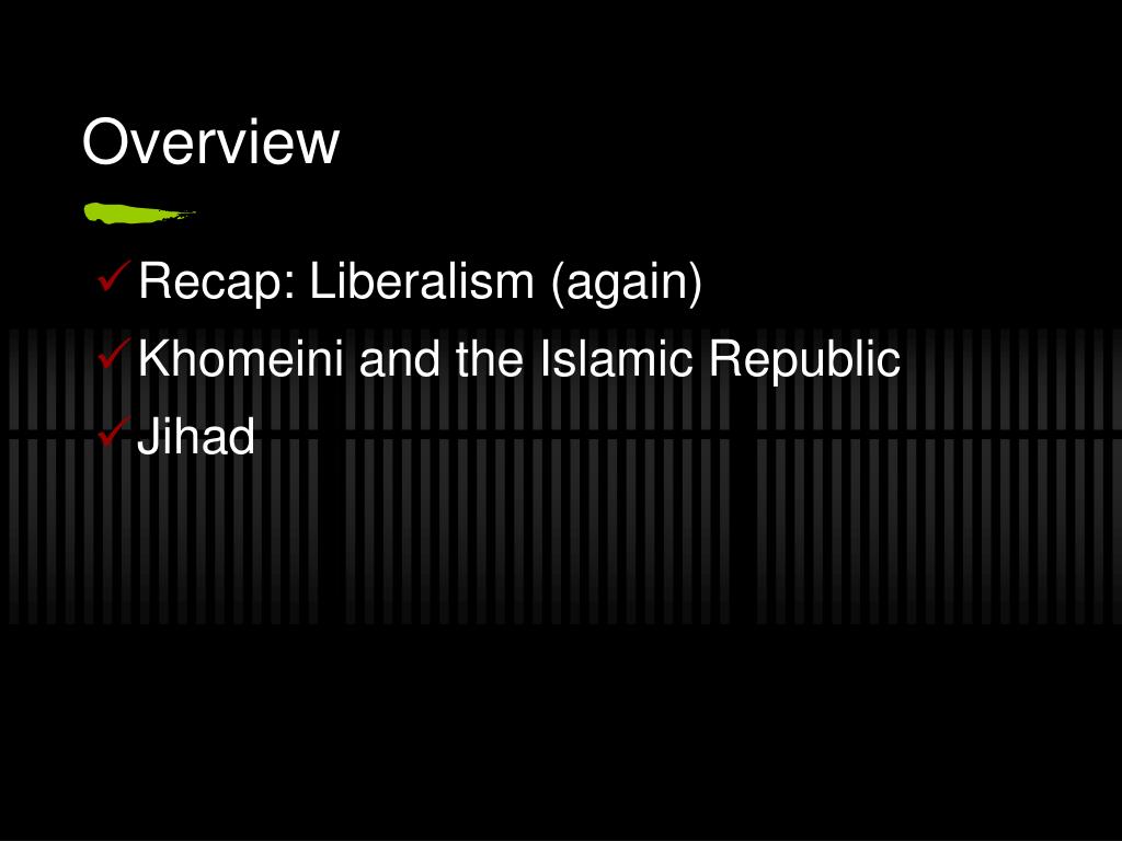 Overview • Recap: Liberalism (again) • Khomeini and the Islamic Republic • Jihad