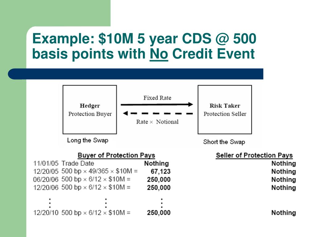 Example: $10M 5 year CDS @ 500 basis points with No Credit Event