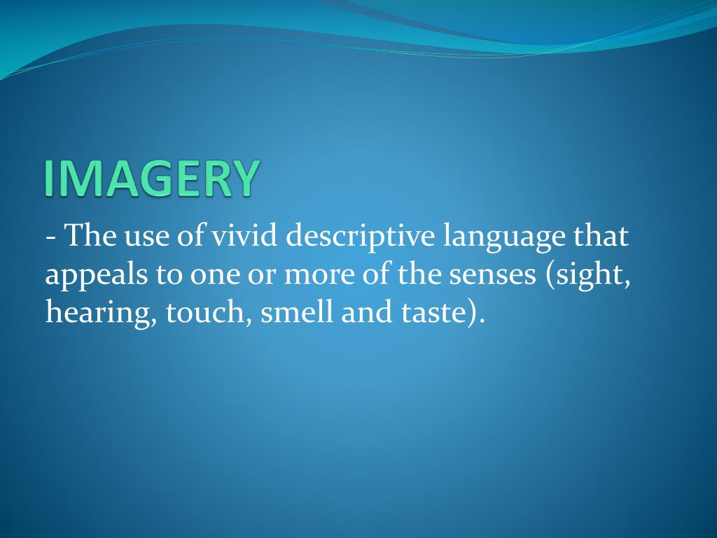 IMAGERY - The use of vivid descriptive language that appeals to one or more of the senses (sight, hearing, touch, smell and taste).