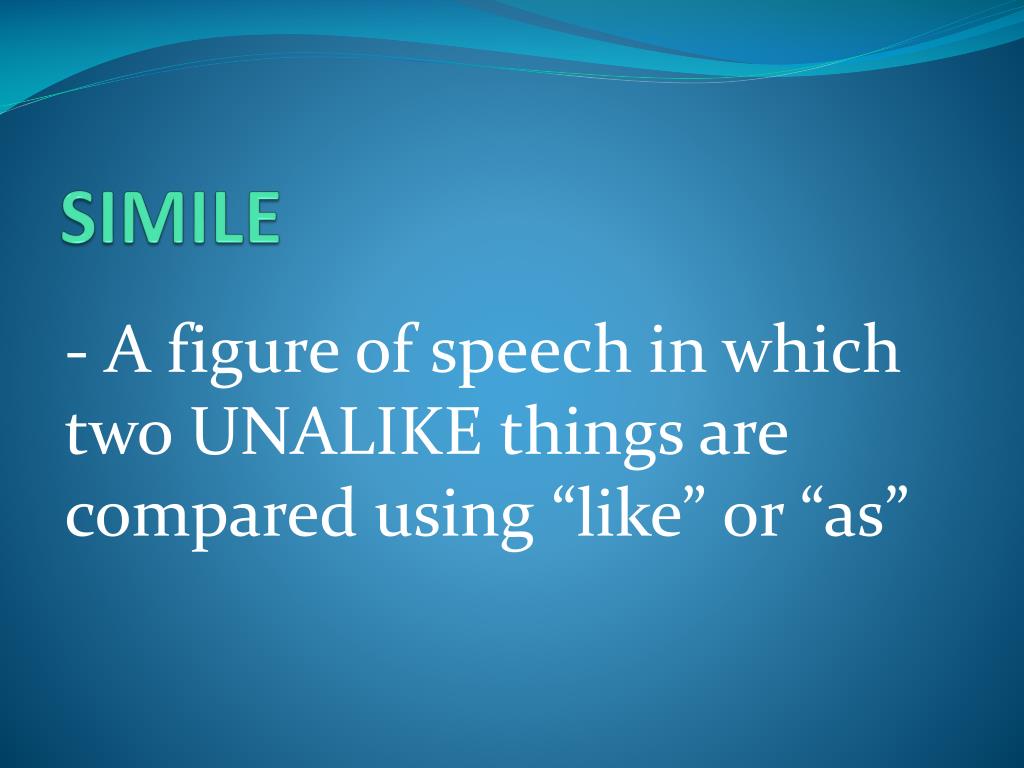 SIMILE - A figure of speech in which two UNALIKE things are compared using “like” or “as”