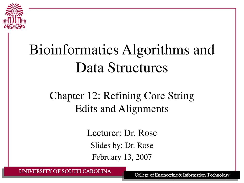 Bioinformatics Algorithms and Data Structures Chapter 12: Refining Core String Edits and Alignments Lecturer: Dr. Rose Slides by: Dr. Rose February 13, 2007