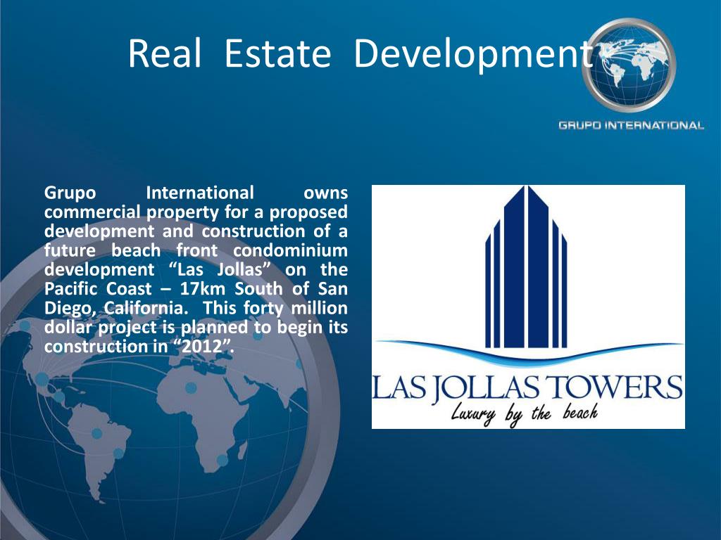 Real Estate Development Grupo International owns commercial property for a proposed development and construction of a future beach front condominium development “Las Jollas” on the Pacific Coast – 17km South of San Diego, California. This forty million dollar project is planned to begin its construction in “2012”.