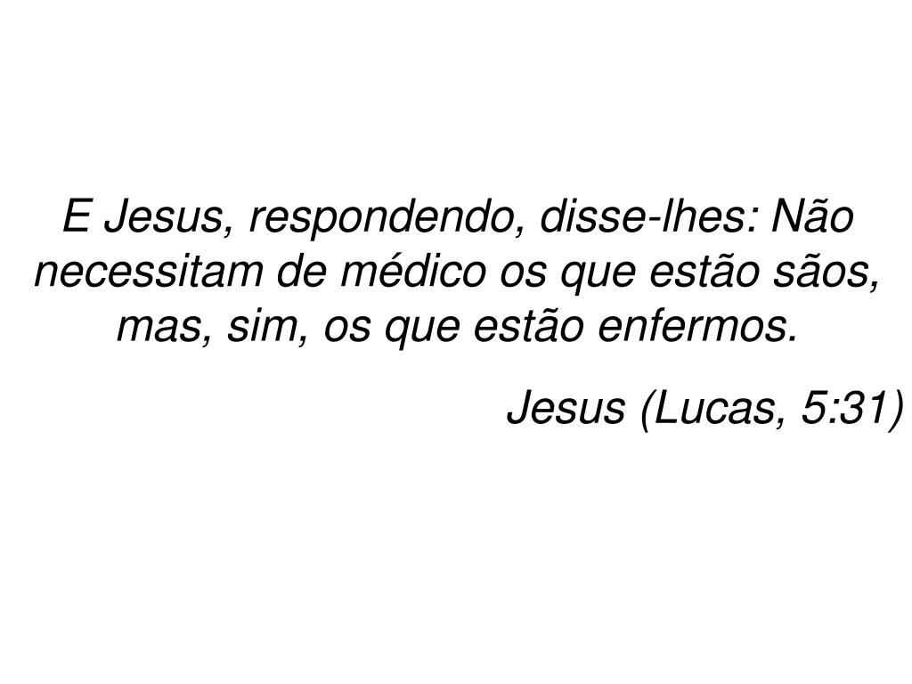 E Jesus, respondendo, disse-lhes: Não necessitam de médico os que estão sãos, mas, sim, os que estão enfermos. Jesus (Lucas, 5:31)