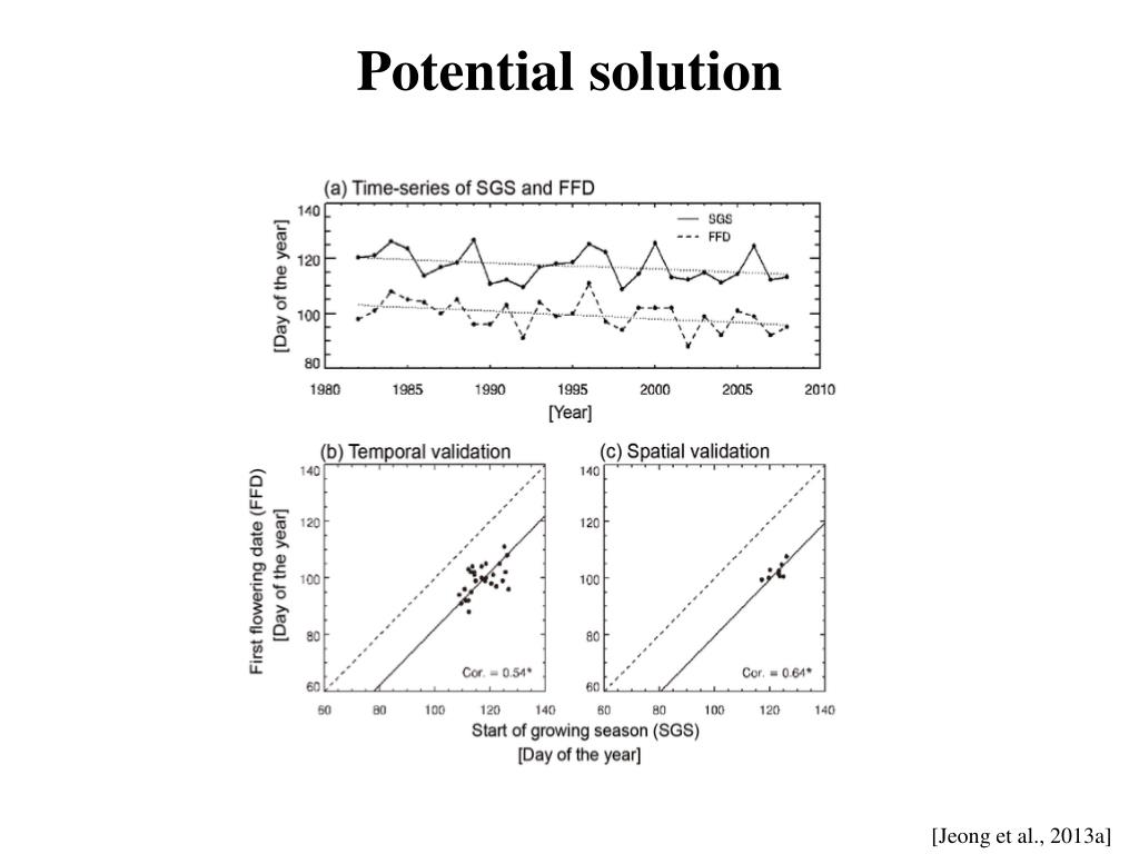 Potential solution Species Early Mid Late successional species [Jeong et al., 2013b; Jeong and Medvigy, in review]