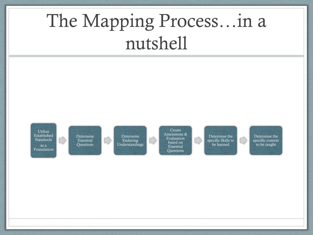 Ideally our Mapping Process would evolve such that we could answer some of the following Essential Questions about the mapping process • How varied and reliable are the ways we assess student learning? • Do our assessments require increasingly complex knowledge and skills as students progress through the curriculum? • Do our assessment methods really tell us what students understand deeply and can apply in new situations? • What kinds of writing assignments and processes are students taught in each grade and in the various subjects? • Are we teaching methods of writing or research skills that are not compatible? • Are we teaching similar methods but labeling them differently so that students are confused? • Would rearranging the sequence in which we teach certain topics and skills enhance student learning and retention? • Are we integrating web and other technological resources in our curriculum? • What is the evidence of that in our maps? • What do we see if we review our curriculum and our pedagogy through a multicultural lens?