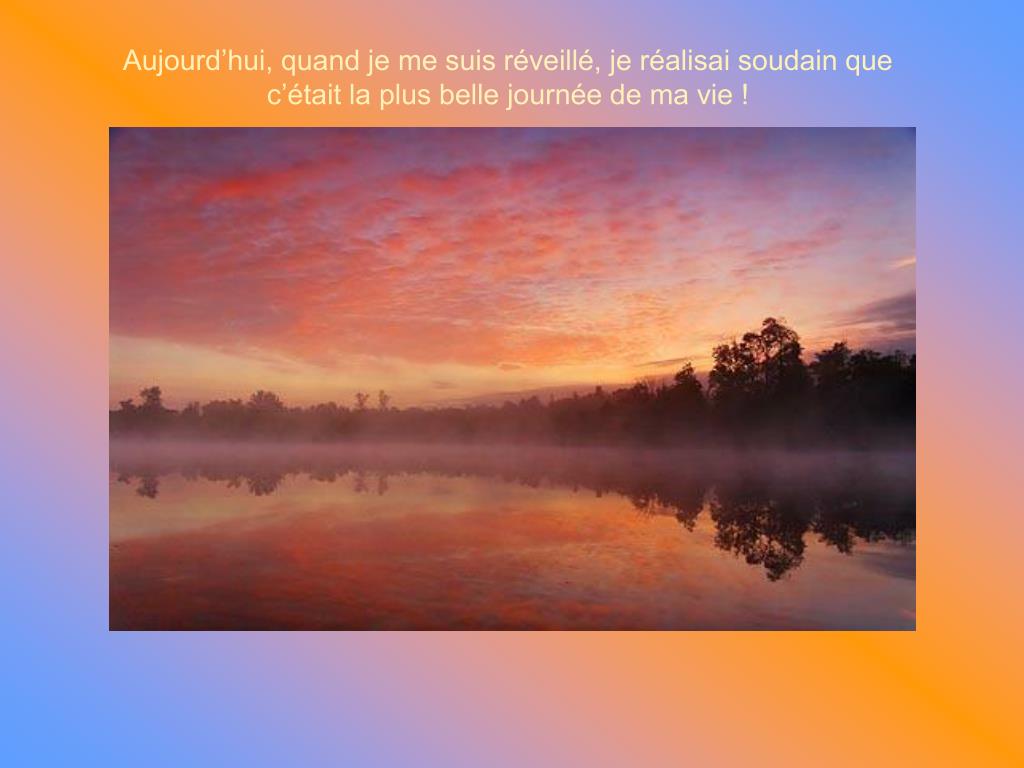 Aujourd’hui, quand je me suis réveillé, je réalisai soudain que c’était la plus belle journée de ma vie !