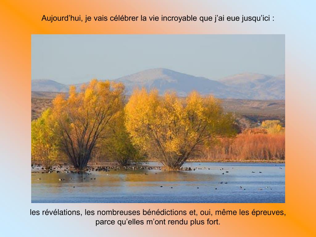 Bonne continuation dans l’éternel présent et que la journée la plus belle de notre vie.!!! De tout mon coeur et avec tout mon amour : Bonne continuation !!!! Que l’amour, la paix, la joie et la sagesse débordent de notre cœur et se déversent tout autour de nous… MERCI À LA VIE !!!!