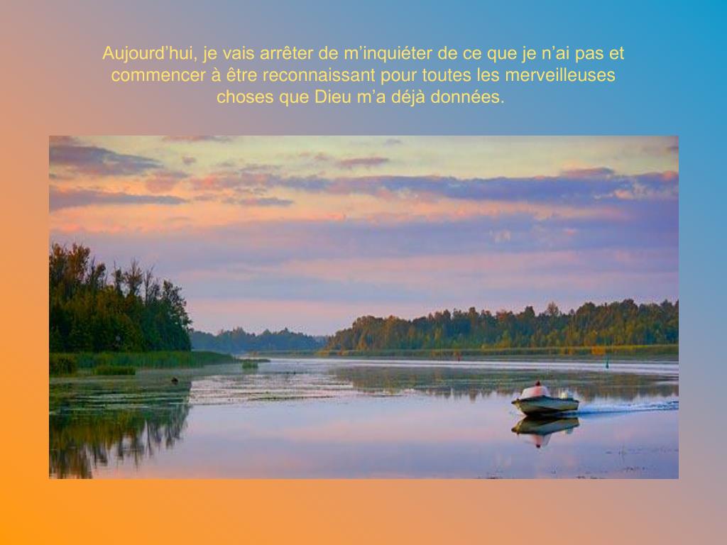 Aujourd’hui, je vais arrêter de m’inquiéter de ce que je n’ai pas et commencer à être reconnaissant pour toutes les merveilleuses choses que Dieu m’a déjà données.