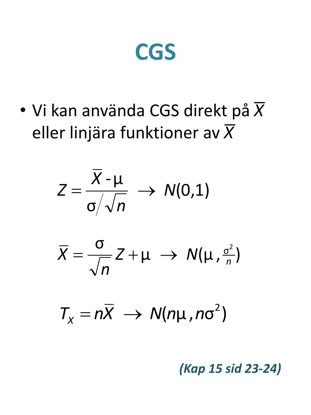 CGS • Vi kan använda CGS direkt på X eller linjära funktioner av X (Kap 15 sid 23-24)