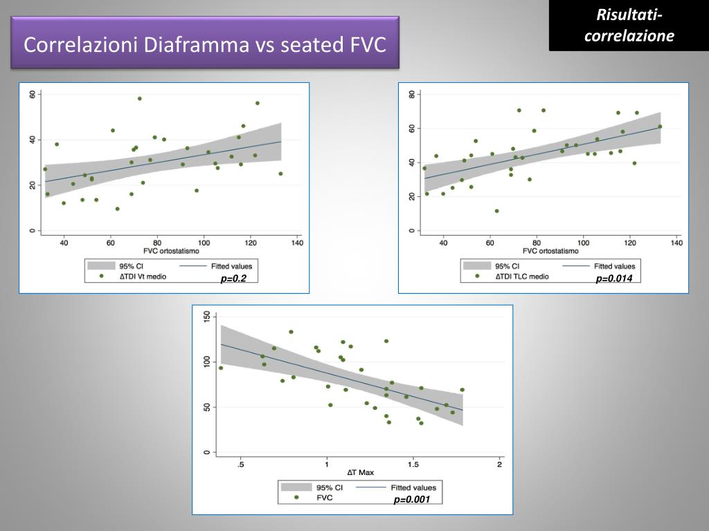 Risultati- correlazione Correlazioni Diaframma vs seated FVC p=0.2 p=0.014 p=0.001