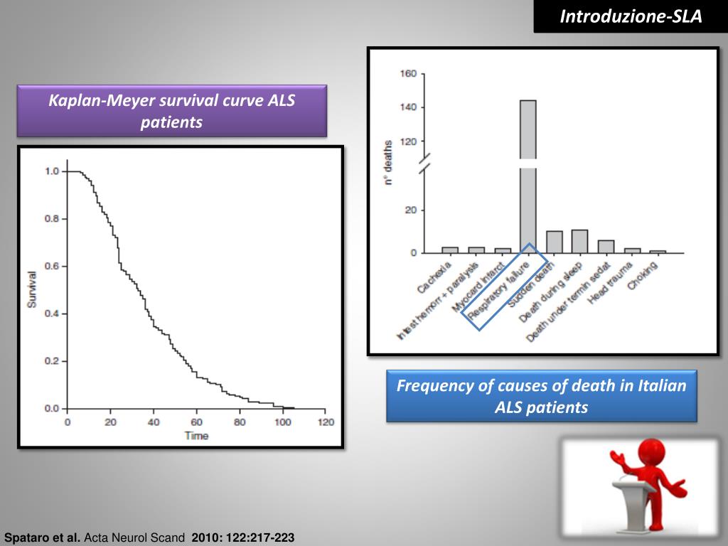 Introduzione-SLA Kaplan-Meyersurvival curve ALS patients Frequencyofcausesofdeath in Italian ALS patients Spataro et al. Acta Neurol Scand 2010: 122:217-223