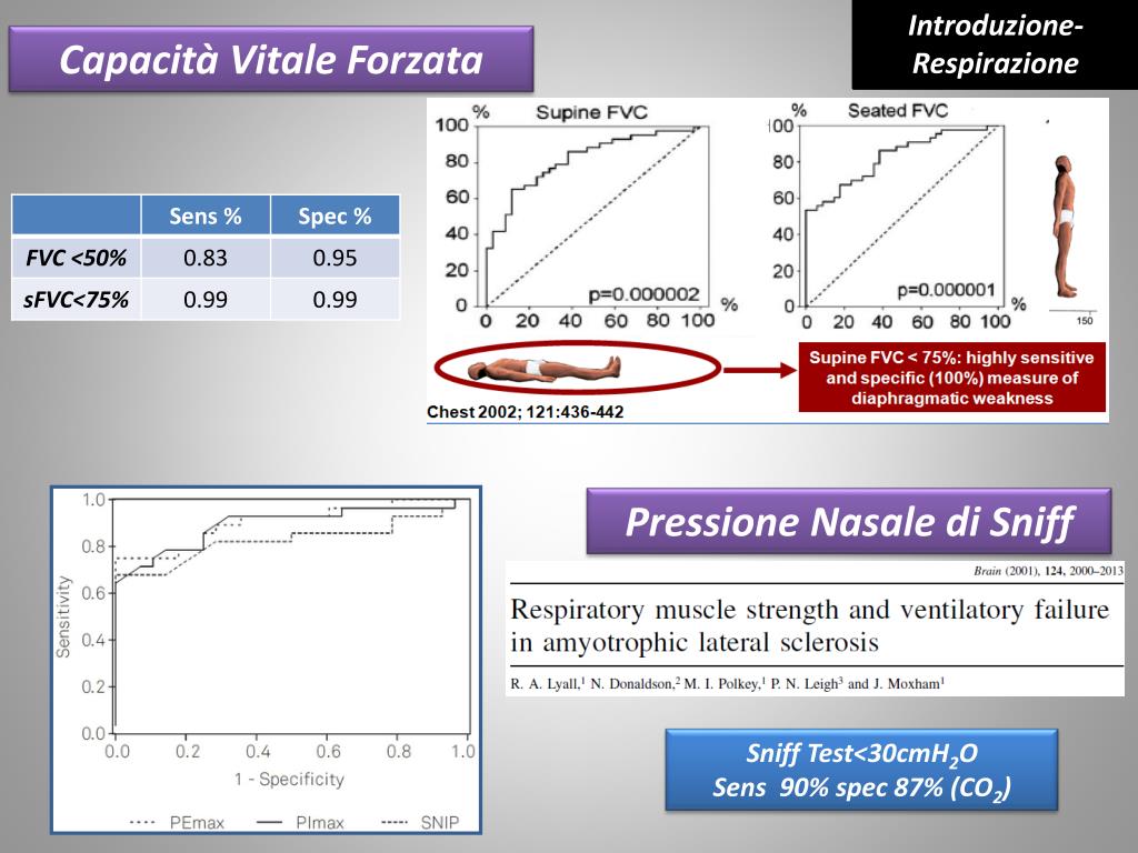 Introduzione-Respirazione Capacità Vitale Forzata Pressione Nasale di Sniff SniffTest<30cmH2O Sens 90% spec 87% (CO2)