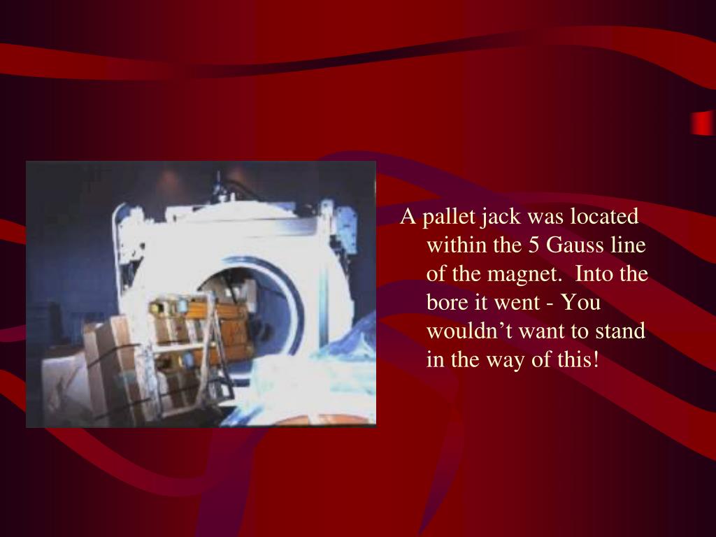 A pallet jack was located within the 5 Gauss line of the magnet. Into the bore it went - You wouldn’t want to stand in the way of this!