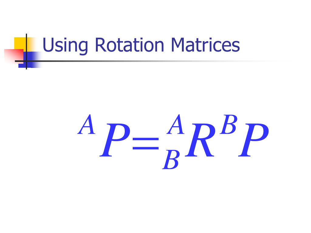 Euler Angles • This means, that we can represent an orientation with 3 numbers • Assuming we limit ourselves to 3 rotations without successive rotations about the same axis: