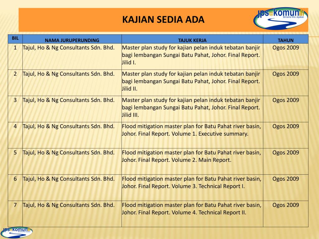 JangkaSederhana • Melaksanakankerjapenggalianparit yang telahdijadualkansetiaptahun • Menggantikanstruktur culvert danlintasankesaiz yang lebihefisyen • Mendapatkanmaklumatuntukmembantuprosesrekabentukbagiparitdanstruktur yang hendakdinaiktarafuntukmengatasimasalah • Maklumkankepadapihak stakeholder tentangkerja yang hendakdijalankan. • Mengeluarkannotispemberitahuankepadapendudukterlibatuntukmalaksanakankerja-kerjapenggaliandanpembersihan • Jalankankerja yang dirancang