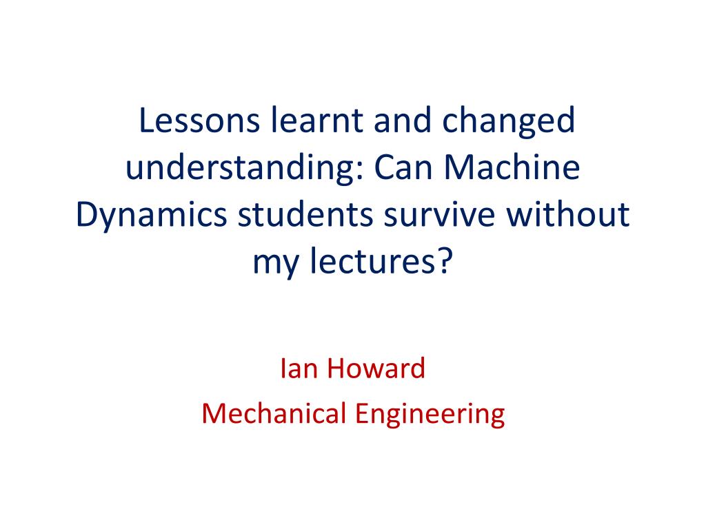 Lessons learnt and changed understanding: Can Machine Dynamics students survive without my lectures? Ian Howard Mechanical Engineering
