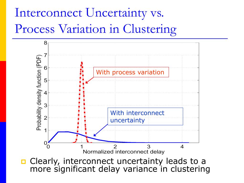 Interconnect Uncertainty vs.Process Variation in Clustering • Clearly, interconnect uncertainty leads to a more significant delay variance in clustering With process variation With interconnect uncertainty