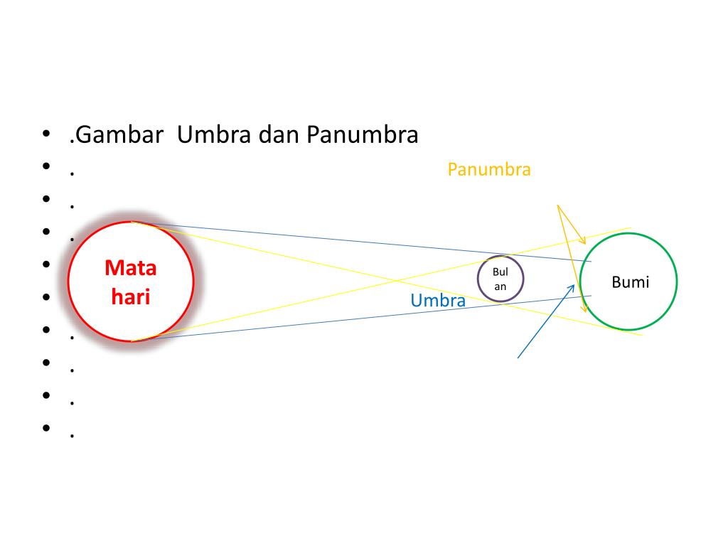 .Gambar Umbra dan Panumbra • . Panumbra • . • . • . • . Umbra • . • . • . • . Mata hari Bumi Bulan