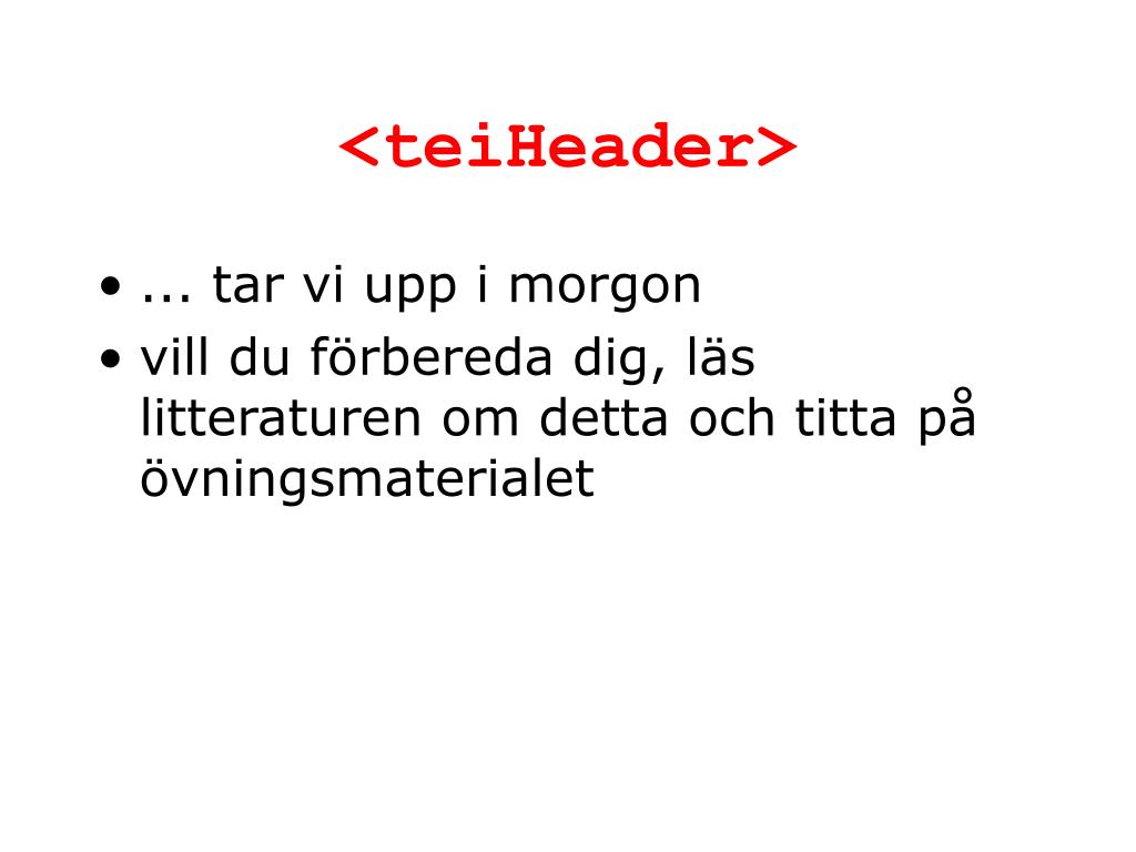 <teiHeader> • ... tar vi upp i morgon • vill du förbereda dig, läs litteraturen om detta och titta på övningsmaterialet