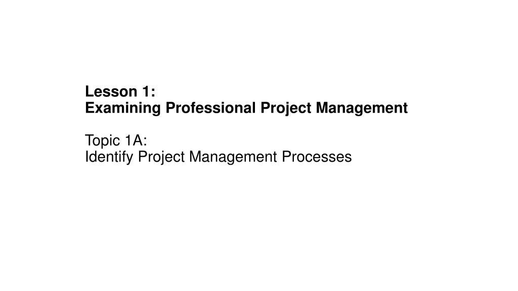 Lesson 1: Examining Professional Project ManagementTopic 1A: Identify Project Management Processes