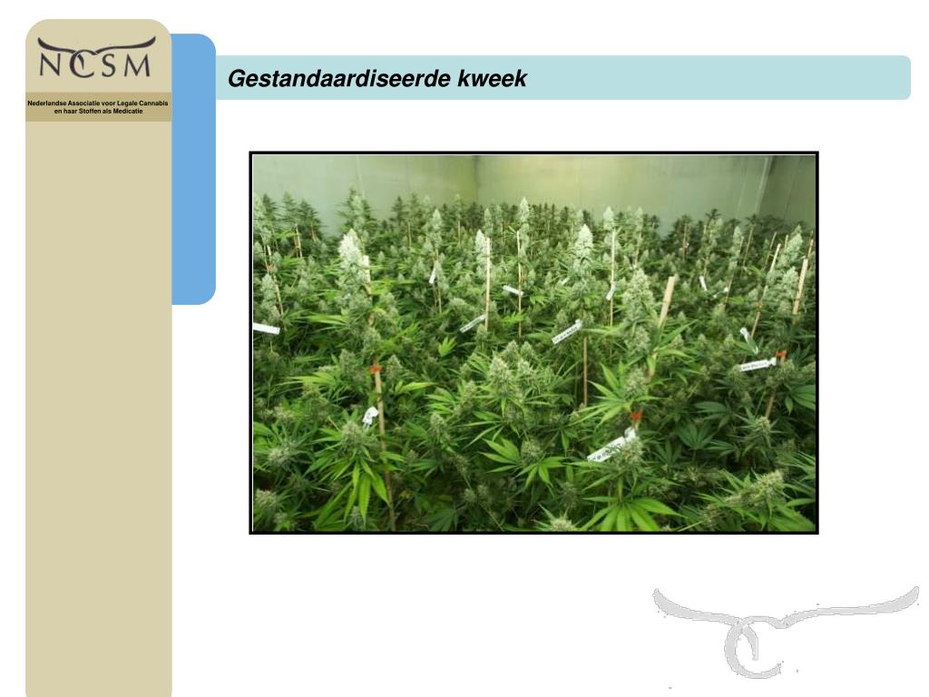 Gestandaardiseerde kweek Nederlandse Associatie voor Legale Cannabis en haar Stoffen als Medicatie