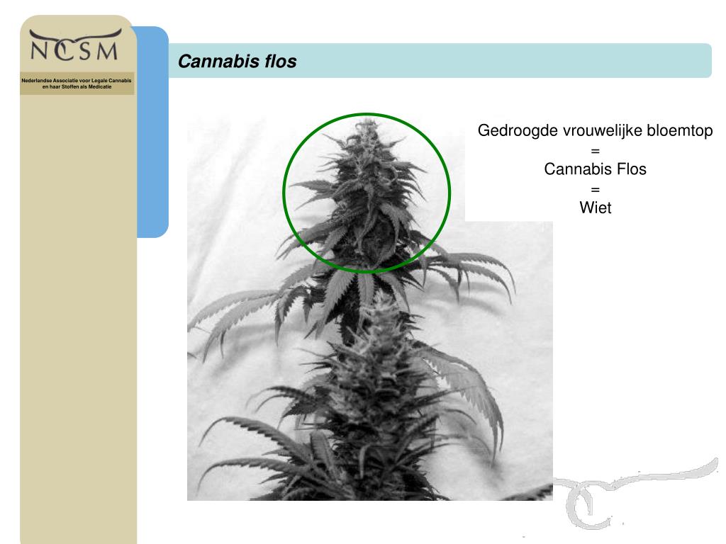 Cannabis flos Nederlandse Associatie voor Legale Cannabis en haar Stoffen als Medicatie Gedroogde vrouwelijke bloemtop = Cannabis Flos = Wiet