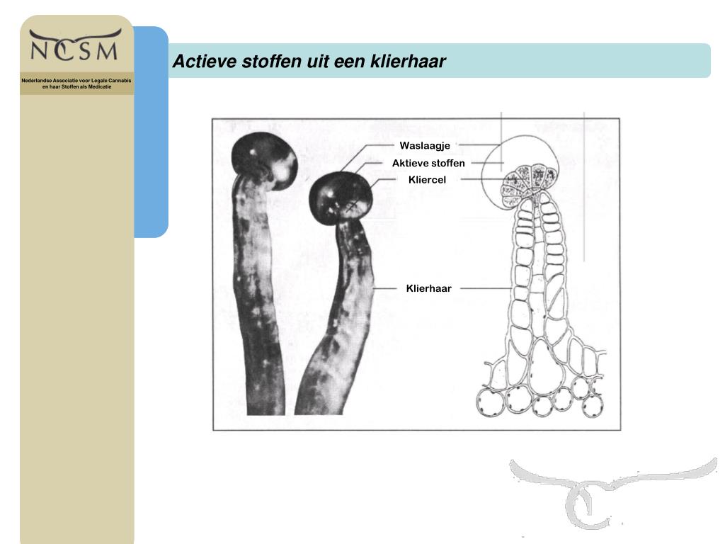 Actieve stoffen uit een klierhaar Nederlandse Associatie voor Legale Cannabis en haar Stoffen als Medicatie