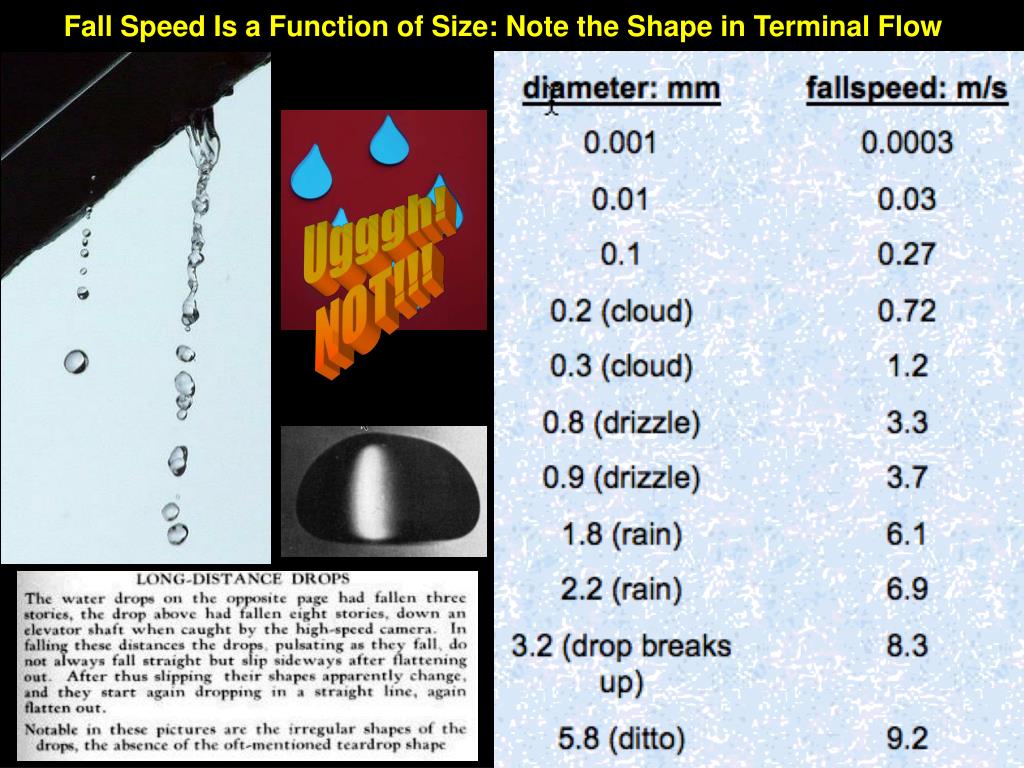 Fall Speed Is a Function of Size: Note the Shape in Terminal Flow Ugggh! NOT!!!