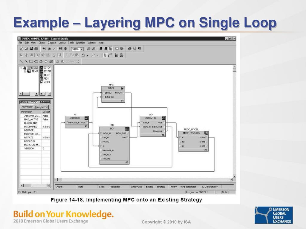 A Starting Point - Model Predictive Control DeltaV Model Predictive control may be implemented at no cost using the MPC block (no license required) if only one manipulated output is utilized. This capability may be used to address loops with difficult dynamics that can not be effectively addressed using PID. A chapter in Advanced Control Unleashed is dedicated to Model Predictive Control. The book CD provides an overview video for each section and examples. The ability to replace PID with Model Predictive control is addressed in chapter 14 of Control Loop Foundation. Class 7201 dedicates over one day to model predictive control in DeltaV. A new class, Control Loop Foundation - Course 9025, Is available through the education department starting in Feb, 2011.