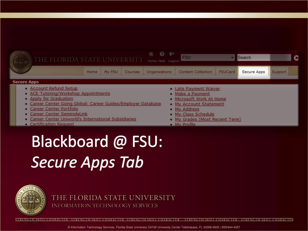 Blackboard @ FSU: • 850.644.8004 • help@campus.fsu.edu