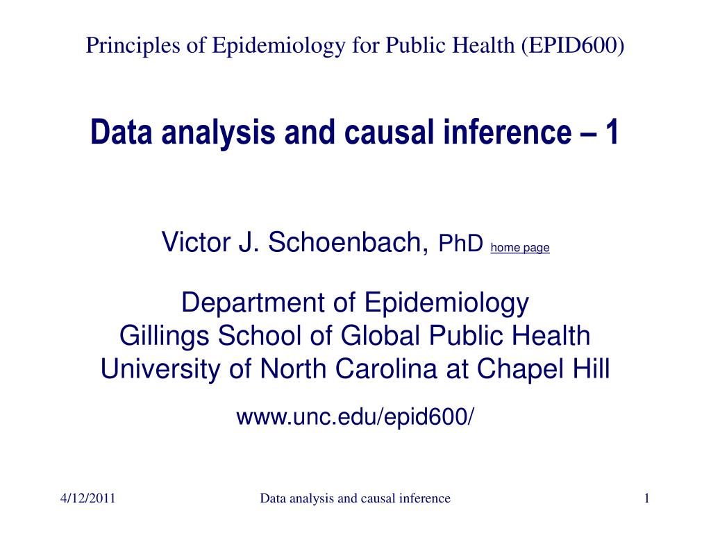 Principles of Epidemiology for Public Health (EPID600). Data analysis and causal inference – 1. Victor J. Schoenbach, PhD home page Department of Epidemiology Gillings School of Global Public Health University of North Carolina at Chapel Hill www.unc.edu/epid600/.