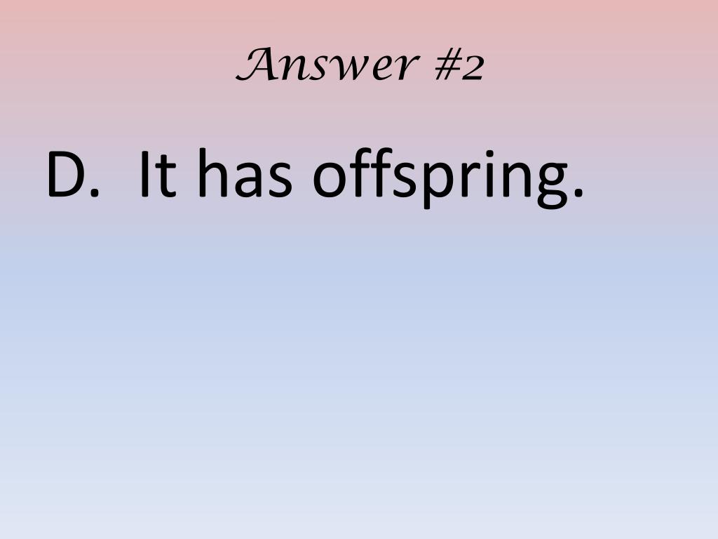 Question #2 What makes an organism biologically successful? A. It is the strongest B. It makes the most money. C. It eats the most food. D. It has offspring.