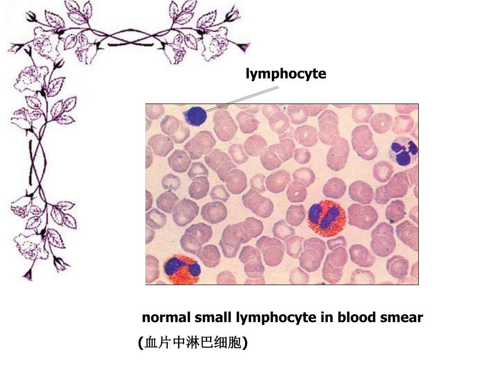 lymphocyte normalsmall lymphocyte in blood smear (血片中淋巴细胞)