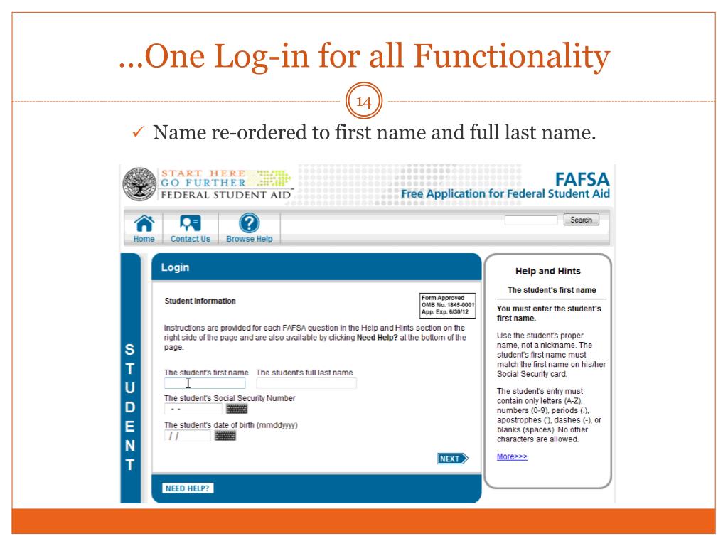 Simplification Objectives • Federal Student Aid (FSA) made a number of additional simplification enhancements to the FOTW site for the 2011-2012 application processing cycle with the following goals in mind. • Provide a more intuitive web experience • Fully integrate all the application components • Continue to provide access to IRS tax information • Reduce redundancy in the financial aid application experience