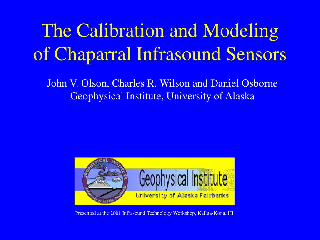The Calibration and Modelingof Chaparral Infrasound Sensors John V. Olson, Charles R. Wilson and Daniel Osborne Geophysical Institute, University of Alaska Presented at the 2001 Infrasound Technology Workshop, Kailua-Kona, HI